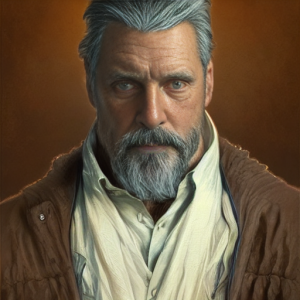 Aussehen: Alterer Mann mit grauem Haar und Bart. 1,80 Meter groß und gepflegt.